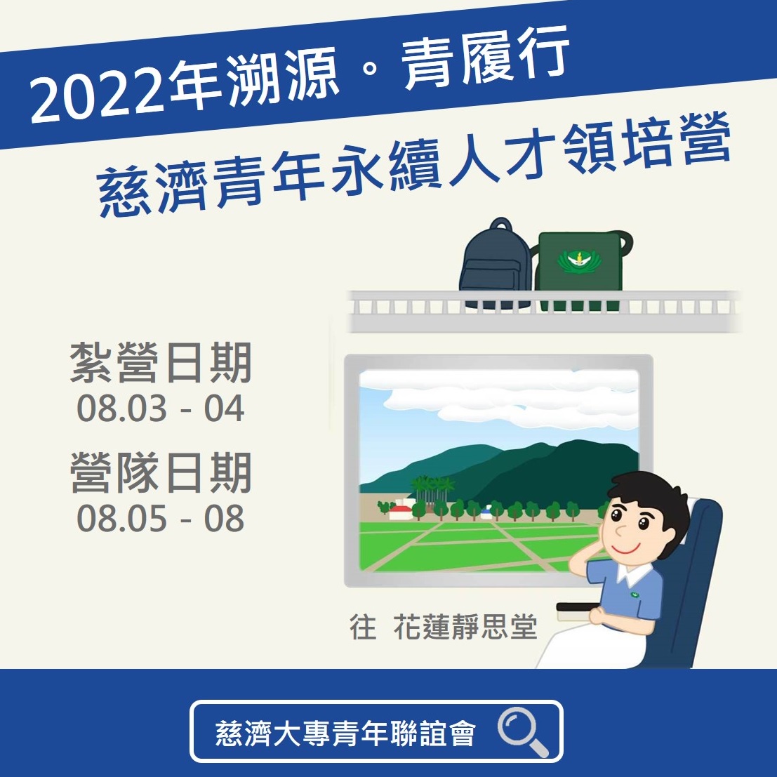 全新打造慈青暑期營隊-【溯源。青履行-慈濟青年永續人才領培營】邀約全臺受服慈青,揹起行囊,返回花東,溯本探源,充電學習!更從中探索自我,啟發自我省思與覺察,進而確立人生方向,揮灑青春分享愛!